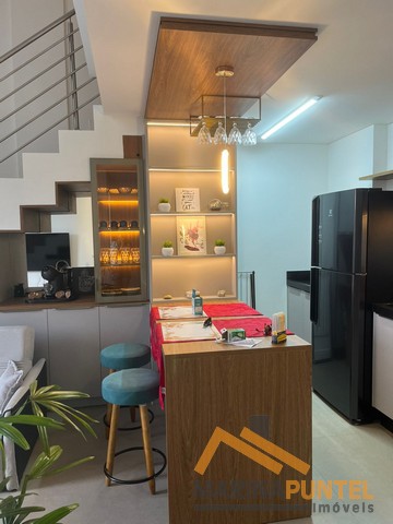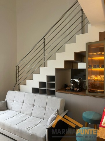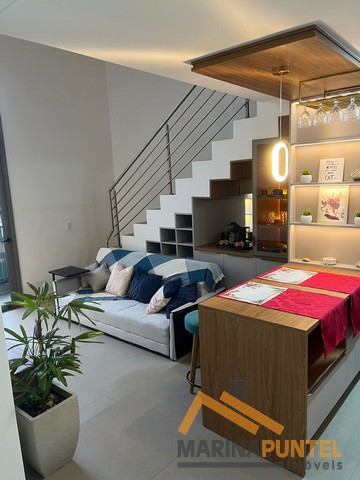 Apartamento com 01 suíte no mezanino, lavabo, sala de estar/jantar, cozinha, sacada com churrasqueira e 01 vaga de garagem coberta.