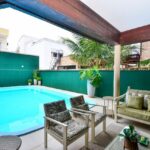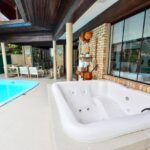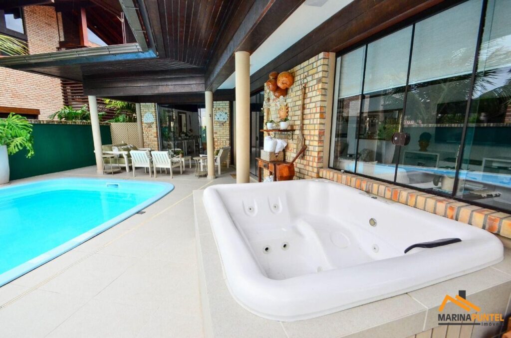 Ampla casa com 07 dormitórios, sendo 03 suítes (01 suíte tem banheira) + 04 quartos ( demi suites), 01 quarto com ventilador de teto, 08 ar condicionados, toda equipada de utensílios domésticos, varanda com churrasqueira, piscina + jacuzzi (SPA), garagem para 04 carros.